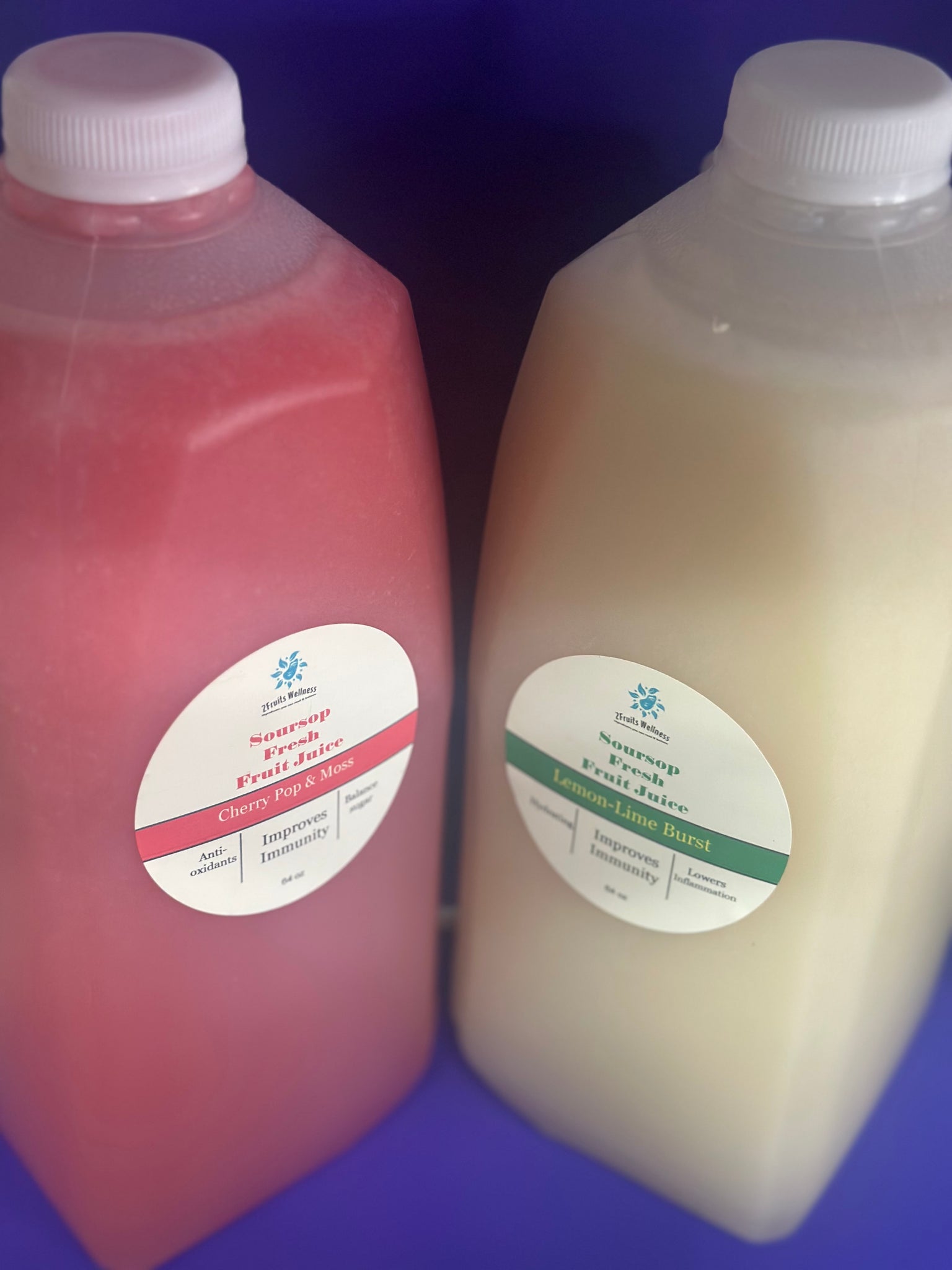 Indulge in the tropical healing power of Fresh Soursop Juice – handcrafted in small batches by 2Fruits Wellness. This nutrient-rich superfruit is known for its naturally sweet flavor and immune-boosting benefits.